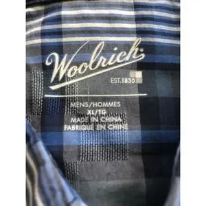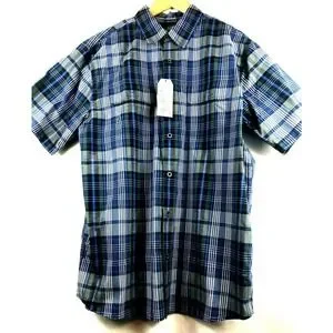 New with tag Men's Woolrich The Adventure Series short sleeve shirt "Keep It Moving" in blue/dark blue/white plaid, Size X-Large. Cotton blend. MSRP $59.00