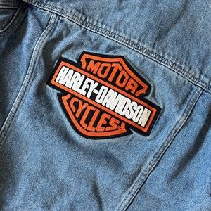 Versatile Harley Davidson Denim Jacket. Deep pockets and large embroidered logo patch make this jacket fantastic. Size small but fits like a medium