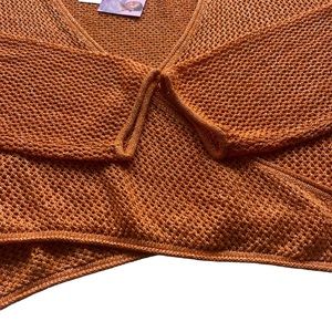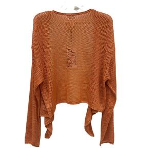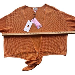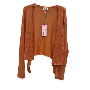 ALANI NOELLE FUTURE COLLecTIVE Women 1X Orange Metallic Crop Open Knit Cardigan