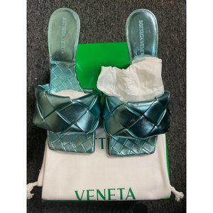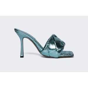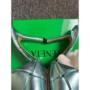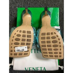 BOTTEGA VENETA LIDO HIGH HEEL SANDALS ICY MOON BLUE SIZE 38C EU NEW WITH DEFECTS