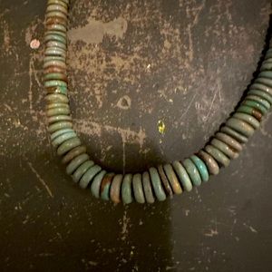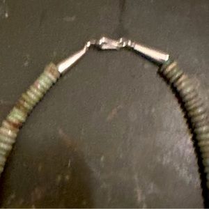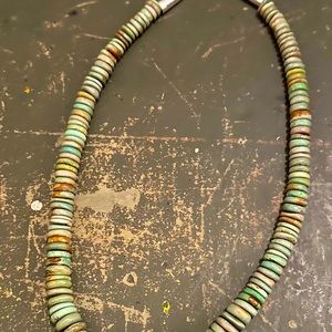 Vintage Native American Graduated Turquoise & Sterling Silver Necklace. All Handmade Native American. The Turquoise is Greens/Blues wonderful quality. It is approximately 20” in length.