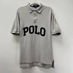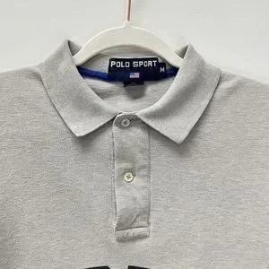 Polo Sport Vintage Ralph Lauren Large Logo Made in USA Grey Polo Shirt M