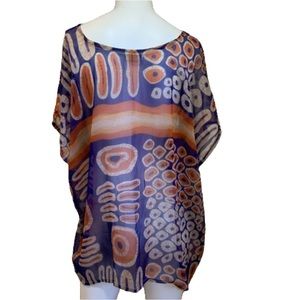 GF Grass-Fields Tunic Top Colorful Boat Neck African Shirt Short Sleeve Size 10