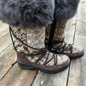 This beautiful snow boots are a Coach classic all the way! Rabbit Fur Lined so soft. They are in Really Good used condition.