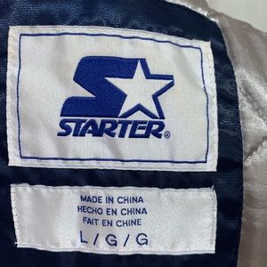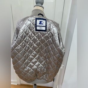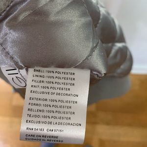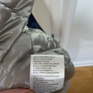 Navy blue exterior with stretchy wrists, neckline, and east and trim.