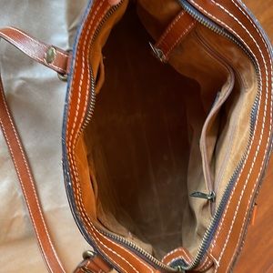 Signature brushed brass hardware, heavy handcrafted stitching