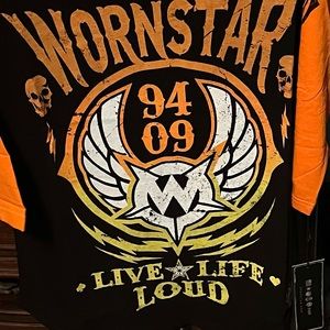 Now this is one set you apart from everyone rockstar shirt it’s made by Wornstar and it’s 3/4 sleeve t-shirt brand new with tags!