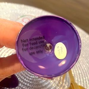 Ornaments are glass with a gold shimmery ribbon for hanging. ๐