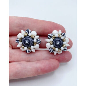 Vintage Alpaca Mexico Silver Abalone Mother of Pearl Large Dangle Earrings 3" Boho Bohemian Statement Flower