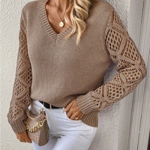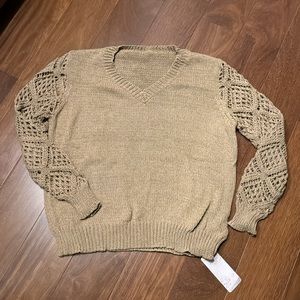 NWT A beautiful tan v-neck pointelle sweater. I consider this more a camel color with a little warm yellow tones.