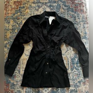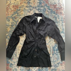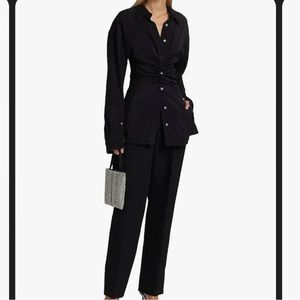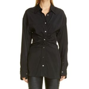 NWT Alexander Wang Ruched Waist Oversize Button-Up Shirt in Black