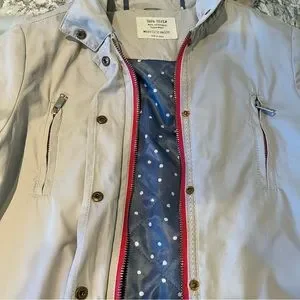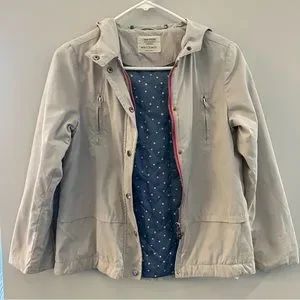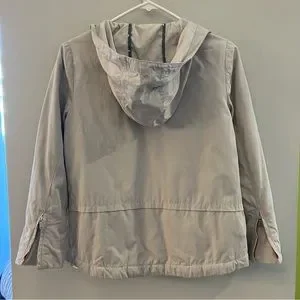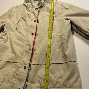 Zara girl’s coat.Tan/light fall.Water repellent parka.Long-sleeve with hoodie.Front flap zip closure with snap bottoms and some small flaws on one of bottoms shown on photo .Good condition.Size 11/12 shown on photo.