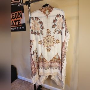 Earth tone kaftan from lovestitch. Tassels at bottom, 100% viscose for a lightweight cover.