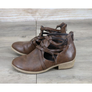 JC Womens Faux Leather Ankle Boots with Straps Size 8 Brown