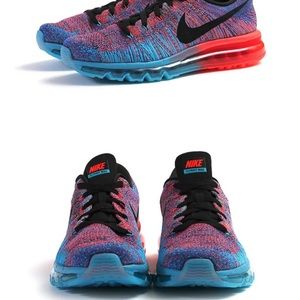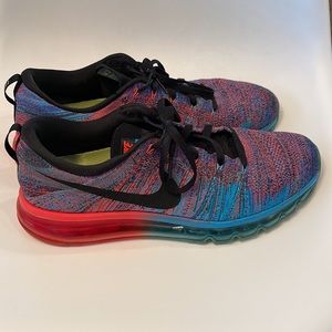 Great condition Nike Flyknit Air Max. Blue lagoon and bright crimson. So much wear left in these Nikes!