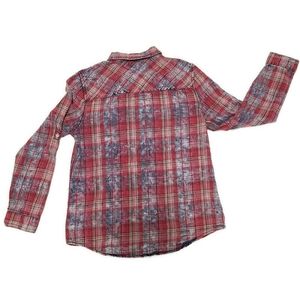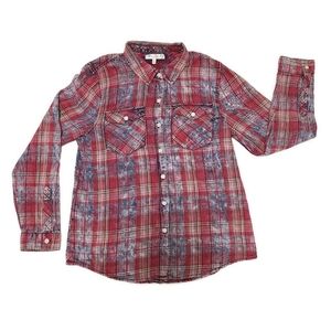 love, FIRE Medium Pink Blue Plaid Button Up Shirt Top