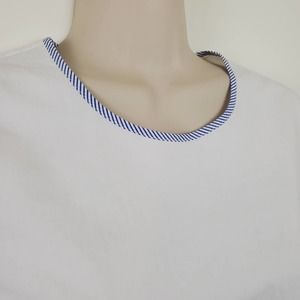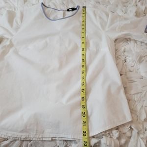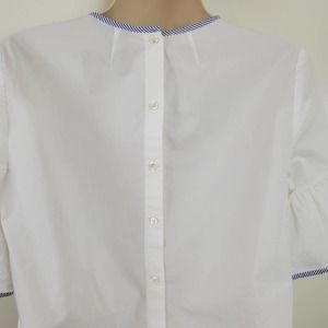 Step out in this super cute J. CREW | BABY DOLL 100% COTTON WHITE STRIPED TRIM BUTTON DOWN BACK TOP. Statement half bell sleeve. Blue & white stripe trim. WOMEN'S SIZE 0