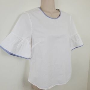 J. CREW | BABY DOLL BUTTON DOWN BACK BELL SLEEVE COTTON WHITE STRIPE TOP WOMEN 0