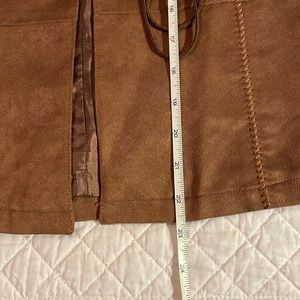 Parallel L Faux Suede Jacket Long Full Sleeves Brass Buttons closure with Ties