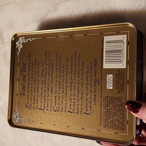 TINSEL AND TIME READS ON THE BACK OF TIN CAN.