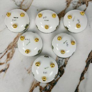 These amazingly beautiful fine porcelain salt dishes/ bowls feature a gold rim and 3-gold "ball feet." A hand-painted peach with a floral design on the outside and “Bavaria" stamped on the bottom of each.