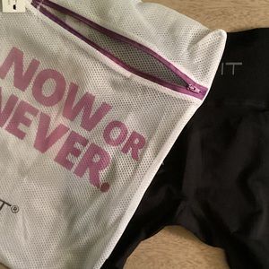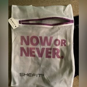 These are new with tags Shefit Seamless Black Leggings that are a size small that includes a laundry bag. Make your move in our uber-comfortable, ultra-flattering seamless leggings. Featuring a slimming V-shaped waistline, booty-lifting design and mesh ventilation to keep you cool. 7/8 ankle-length design with a V-shaped waist and medium-compression fabric.