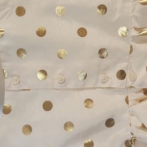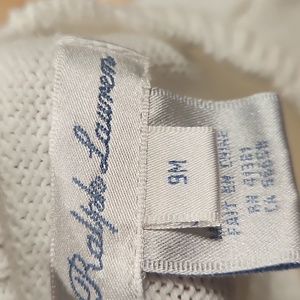 RALPH LAUREN KIDS GIRLS PARTY SLEEVELESS OFF WHITE DRESS SIZE 9M PRETTY WITH GOLD POLKA DOTS. PREOWNED BUT IN EXCELLENT CONDITION. 100% POLYESTER. I ADDED WITH NO CHARGE A OFF WHITE BOLERO SWEATER WITH LONG SLEEVES. m