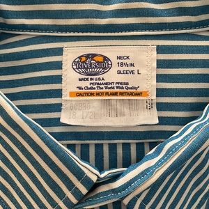 Size is 18.5 neck and measures 30” from armpit to armpit, 33” long from back of collar to hem, and sleeves are 17.5” long from collar seam to end of sleeve. Additional photos and measurements available upon request.
