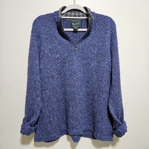 Gently worn, in good pre-owned condition. Woolrich blue/purple wool ¼ zip pullover. Very light but warm, no stains or holes in the knit. Perfect for cooler weather. Some pilling, nothing obvious.