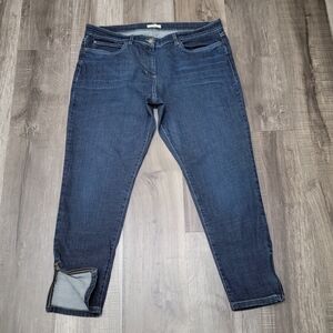 Pre-owned and in great condition. Elastic band with tie string around waist. Tie string has metal accents. Stretch material. Slightly tapered at bottom. 2 front pockets.