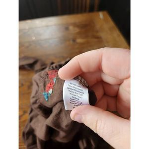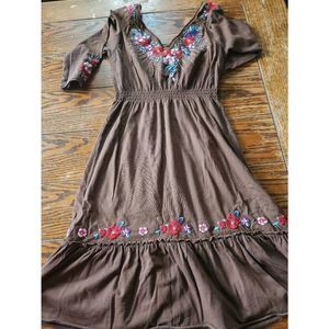 Johnny Was brown vneck embroidered boho elastic waist cotton dress sz S