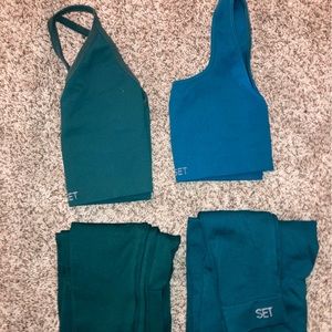 - Mojito Racer V Tank (S) + Box Bra (S) + 2 Pairs of Small Leggings (One pair + box bra are faded as pictured) other pieces are like new!