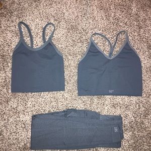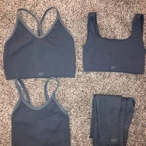 - Slate Racer V Tank (M) + Scoop Tank (XS) + Box Bra (S) + Leggings (S) / Pretty Good Condition