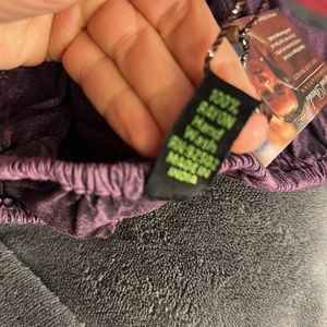 New with the tags. Beautiful deep purple color. The laces are adjustable in the front. Pit to pit is 22 inches or approximately 44 inches around. The waist is 19 inches or approximately 38 inches around. The hips are 19 or approximately 38 inches around. The length is 20 inches from the shoulders. It would fit a small to medium person.