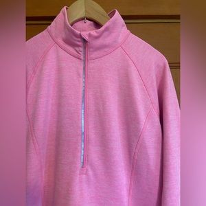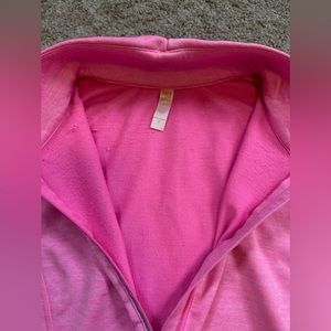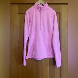 This activewear half-zip from LUCY is as cute and cozy as it is cute. Featuring a heathered pink color, front kangaroo pocket, thumb holes, and a reflective edge down the zipper.