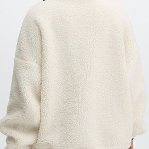This Sherpa jacket is both warm and stylish with its contrast zipper and patch pocket, has an adjustable hem. Size 2X but I am a S/M and it fit me well, just oversized (but too majorly). Very lightly worn - like new.