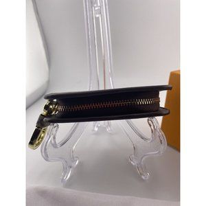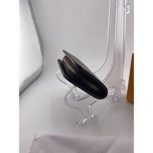 Measuring 3.6 inches in length and 2 inches in width, this coin wallet is compact and perfect for on-the-go use. It also features a zip-around closure, key chain, and accents of the logo. This Gucci wallet is a great accessory for any woman who wants to add a touch of luxury to her everyday life. Pristine condition with dust bag and box.