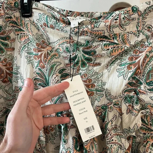 656 NWT Veronica Beard Memphis Skirt Size 12 Color Cream Green