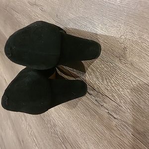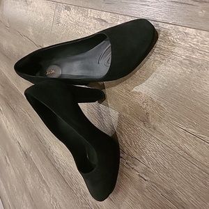 Clark's black heel pumps, block pumps. Suede material. 3.5 inch heel and approx 1.5 heel width from back of heel.
