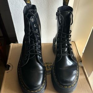 Doc Martens Jadon Platform shiny boots. Size 7 women’s size 6 men’s. Black. Boots have a few scuffs on front/top as seen in last two pictures. Offers welcome.