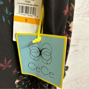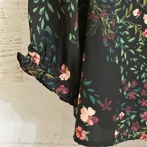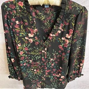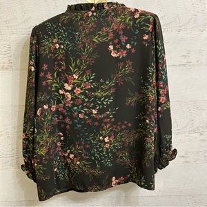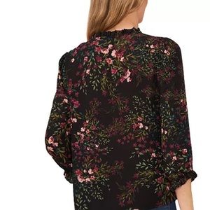 CeCe Women’s Floral Print Ruffled V-Neck Button Front Blouse