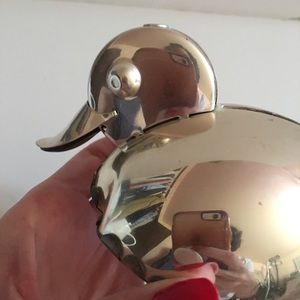 MOD style Duck with streamline curves and a whimsical face and movement. Put a penny in its back and watch its beak move and rock on its rounded tummy. Sweet accent for any Childs room or any child at heart.