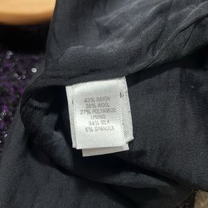 Beautiful like new open front cardigan. Three beautiful sparkly buttons on the front. Wool/silk mix material. No holes, stains or signs of wear. Slightly padded shoulders. Beautiful silk liner.