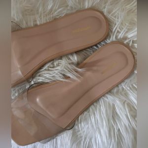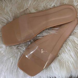 PLT 🩷 Nude Pu Clear Strap Mule Sandals