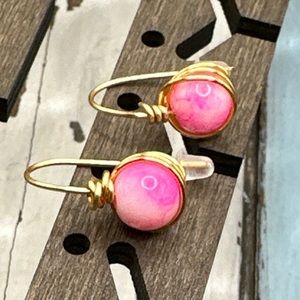 Agate hot pink spheres dangle drop earrings