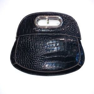 Nine West Faux Croc Clutch Purse Black Vegan Leather Embossed Small Bag