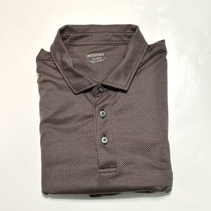 Untuckit Polo Shirt Long Sleeve Brown Damaschino Diamond Casual Men's Size XL