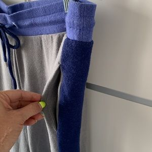 Ultra soft, lightweight. Gray and blues. Great for lounging or running errands.
