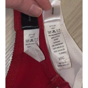 Lot of 2 Women’s Fredericks Of Hollywood Balconette bras, white and red, lace, underwire, back close