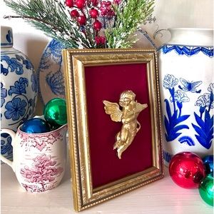 Vintage Red Velvet Framed Cherub
